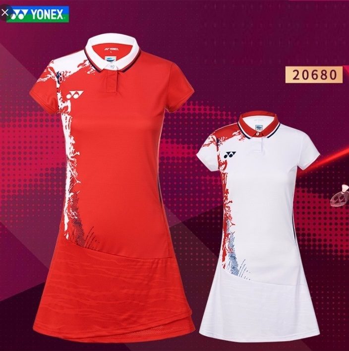 YONEX - CHINA OLYMPIC TEAM UNIFORM WOMEN'S DRESS WITH INNER SHORTS - RED / WHITE - 20680EX - Euro L
